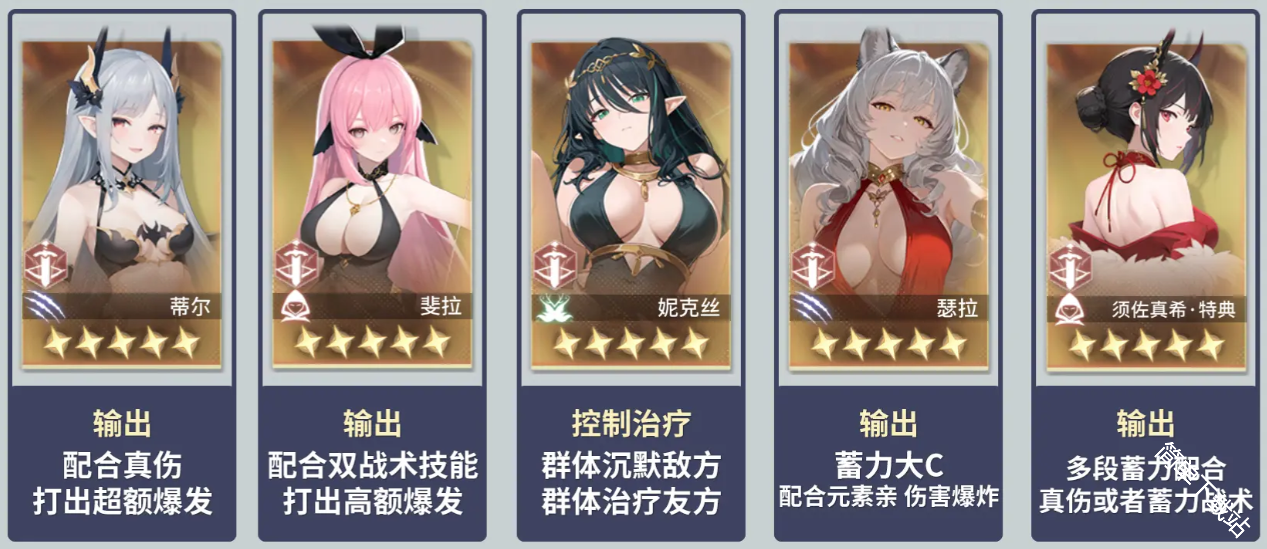 2、瑞亚、米娅、尤缇迦·特典、佐伊·特典、珀瑞斯、蒂尔、斐拉、妮克丝、瑟拉、须佐真希·特典