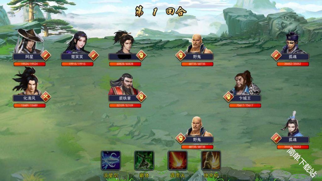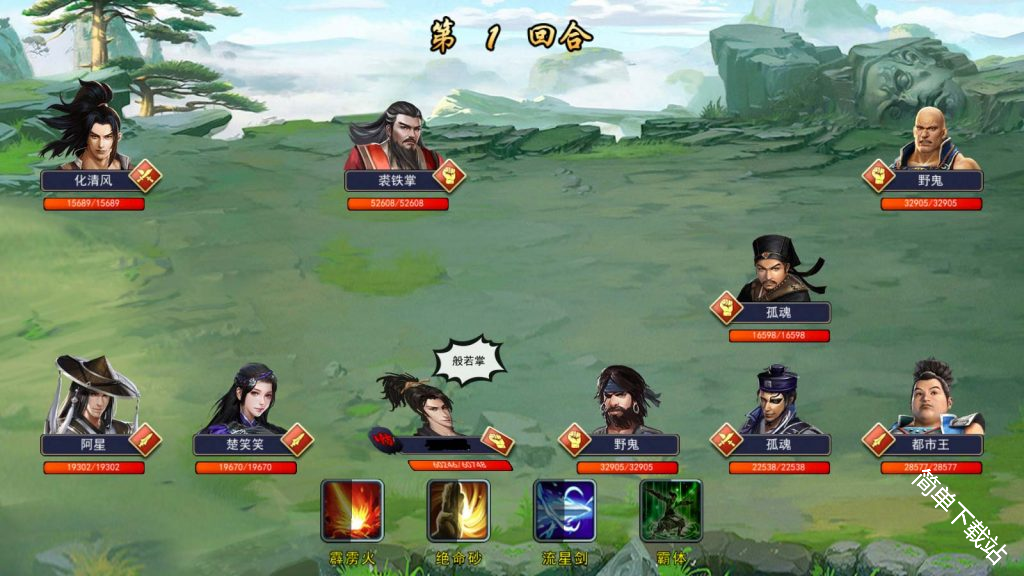 推荐203阵型或者023阵型过关,下路主拳+2剑,2剑带打2或者打3的武功,迅速消灭对方下路的2个烈火刀法,剩下的拳随从慢慢削就行了