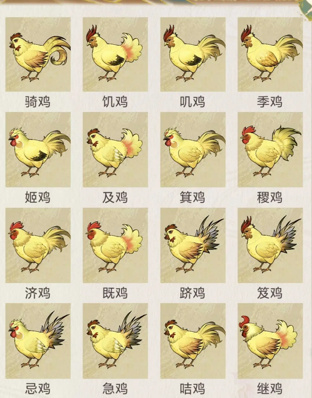 4、稷鸡、跻鸡、际鸡、辑鸡