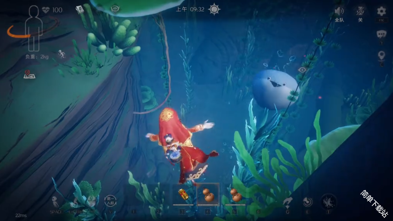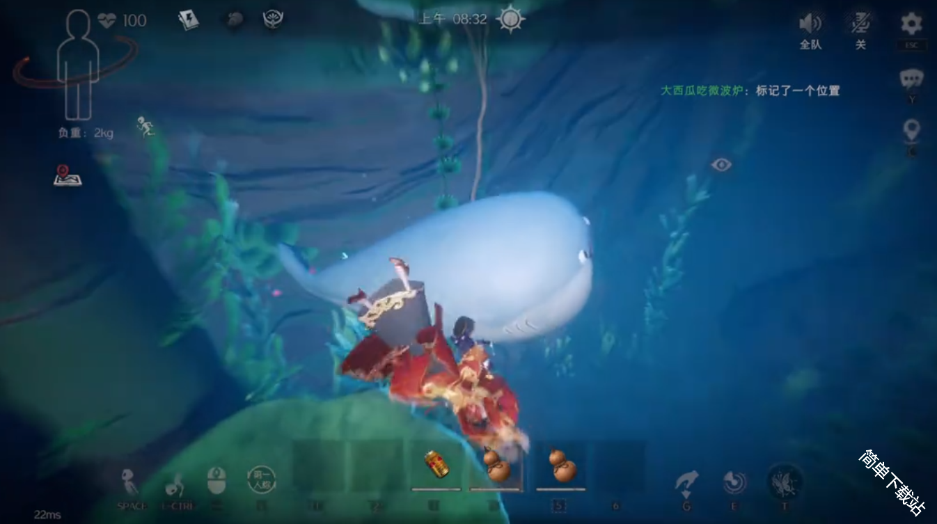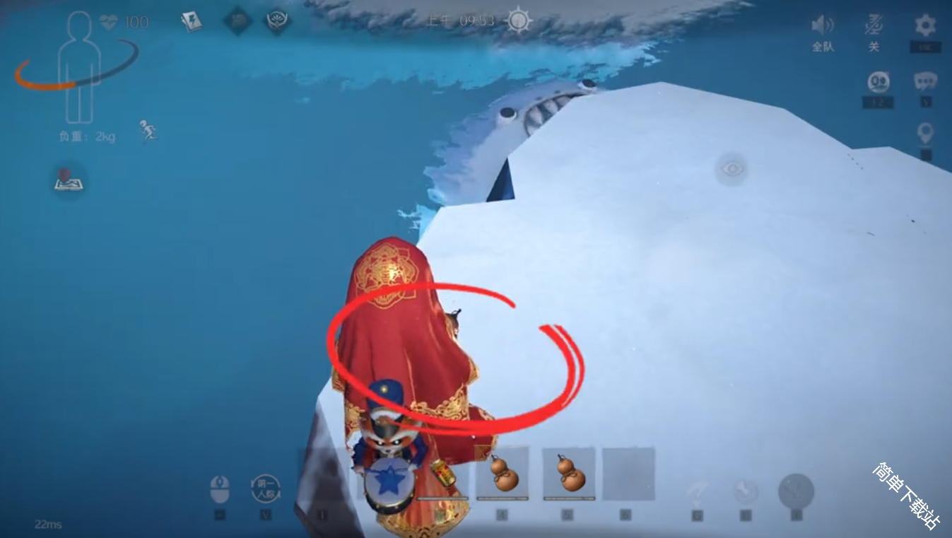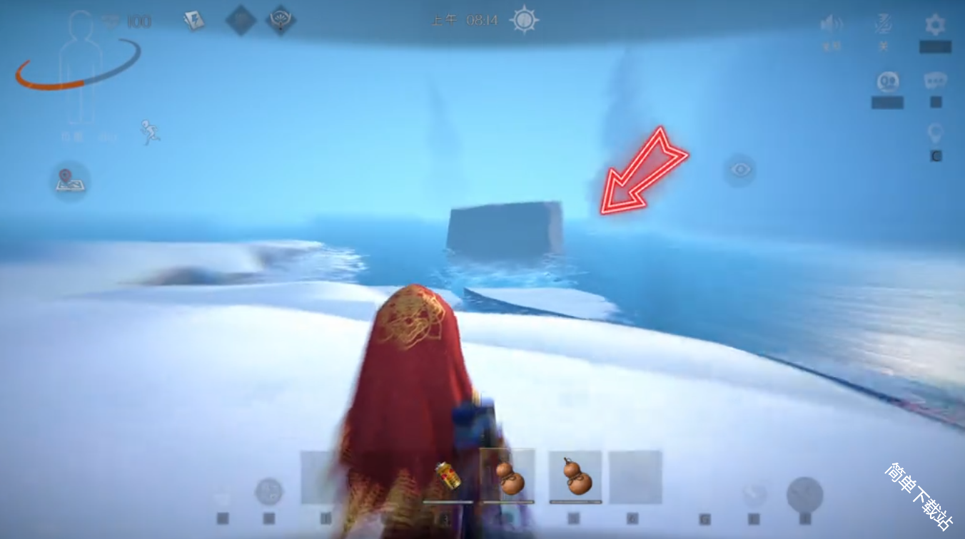 2、可以看到前方有一个大石头,来到石头附近可以标记一下,然后就可以下水了