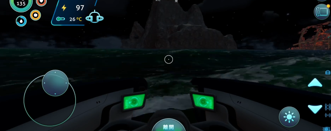 1、首先前往五指山,也就是外星大炮所在地,往极光号船头开,就是有一大片云的位置