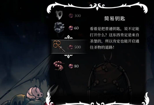 空洞骑士丝之歌中的简易钥匙需要花费500念珠购买,简易钥匙可以用来开启圣堡内的各类闸门,闸门不会在地图上标注,需要自行探索各个区域并寻找,下文列举简易钥匙的获取方法和一些闸门的位置内容!