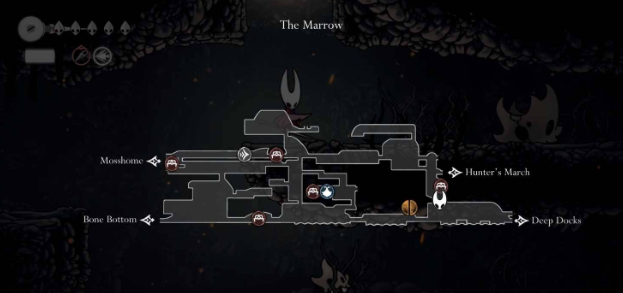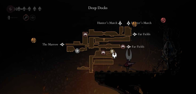 第一个位置是在髓底镇的佩珀商店可以花费500念珠购买。然后前往深坞(从髓骨洞窟往右下角走,看到金属平台和熔岩),注意熔岩会造成2格伤害。