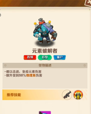 能进行远程攻击,额外受到电伤害,且免疫燃烧,被冻结会回血,可用电磁子弹击杀,也可使用分裂子弹和26级燃油弹,
