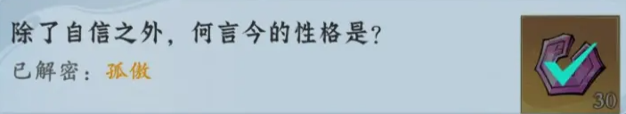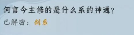问剑长生关于何言今的神念禁制友情问答题目答案分别是主修剑系、是赢过小比、代号名称是道院天骄何言今、性格是孤傲、喜好是显摆。