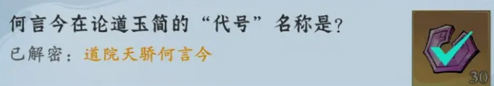 3、何言今在论道玉简的“代号”名称是?道院天骄何言今