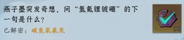 5、燕子墨突发奇想,问“氢氦锂铍硼”的下一句是什么?碳氦氧氟氖