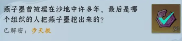 2、燕子墨曾被埋在沙地中许多年,最后是哪个组织的人把燕子墨挖出来的?步天教