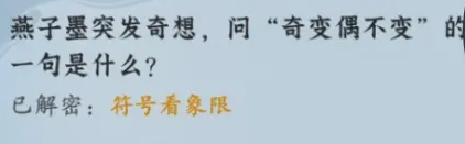 问剑长生关于燕子墨的神念禁制答案分别是符号看象限、步天教、深藏功与名、是燕子墨发明的、碳氮氧氟氖。